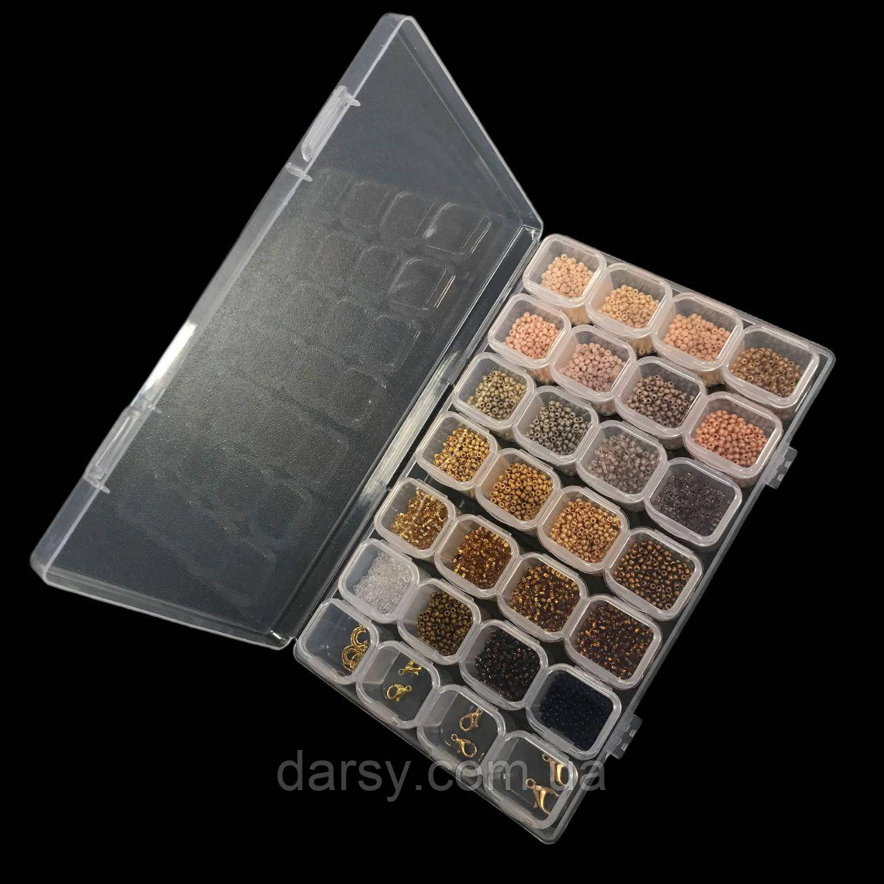 Прозорий органайзер, контейнер з бісером, подарунковий набір для рукоділля на 28 ячеєк